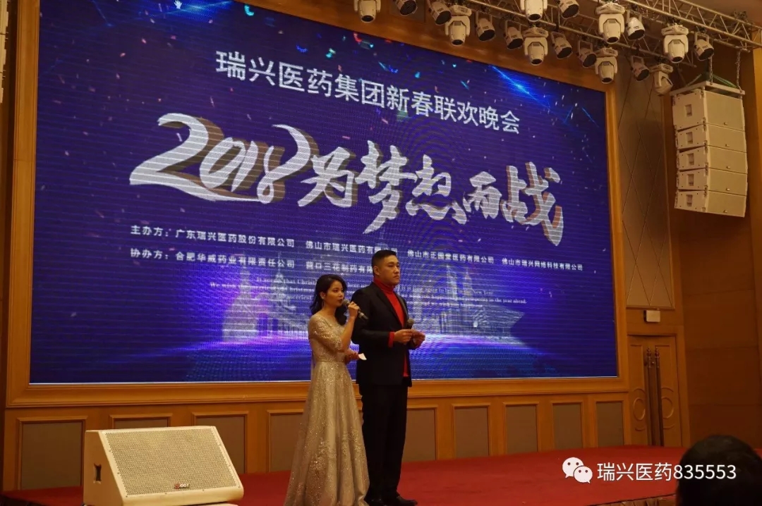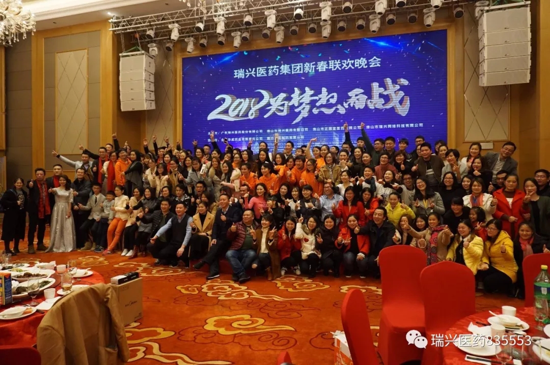 經過總部及各子公司的精心準備,充滿期待的瑞興醫藥集團“2018為夢想而戰”新春聯歡晚會終于在2月3日晚上揭開了神秘的面紗!本次聯歡晚會的主辦方為廣東瑞興醫藥股份有限公司、佛山市瑞興醫藥有限公司、佛山市正園堂醫藥有限公司、佛山市瑞興網絡科技有限公司,協辦方為合肥華威藥業有限責任公司、營口三花制藥有限公司。