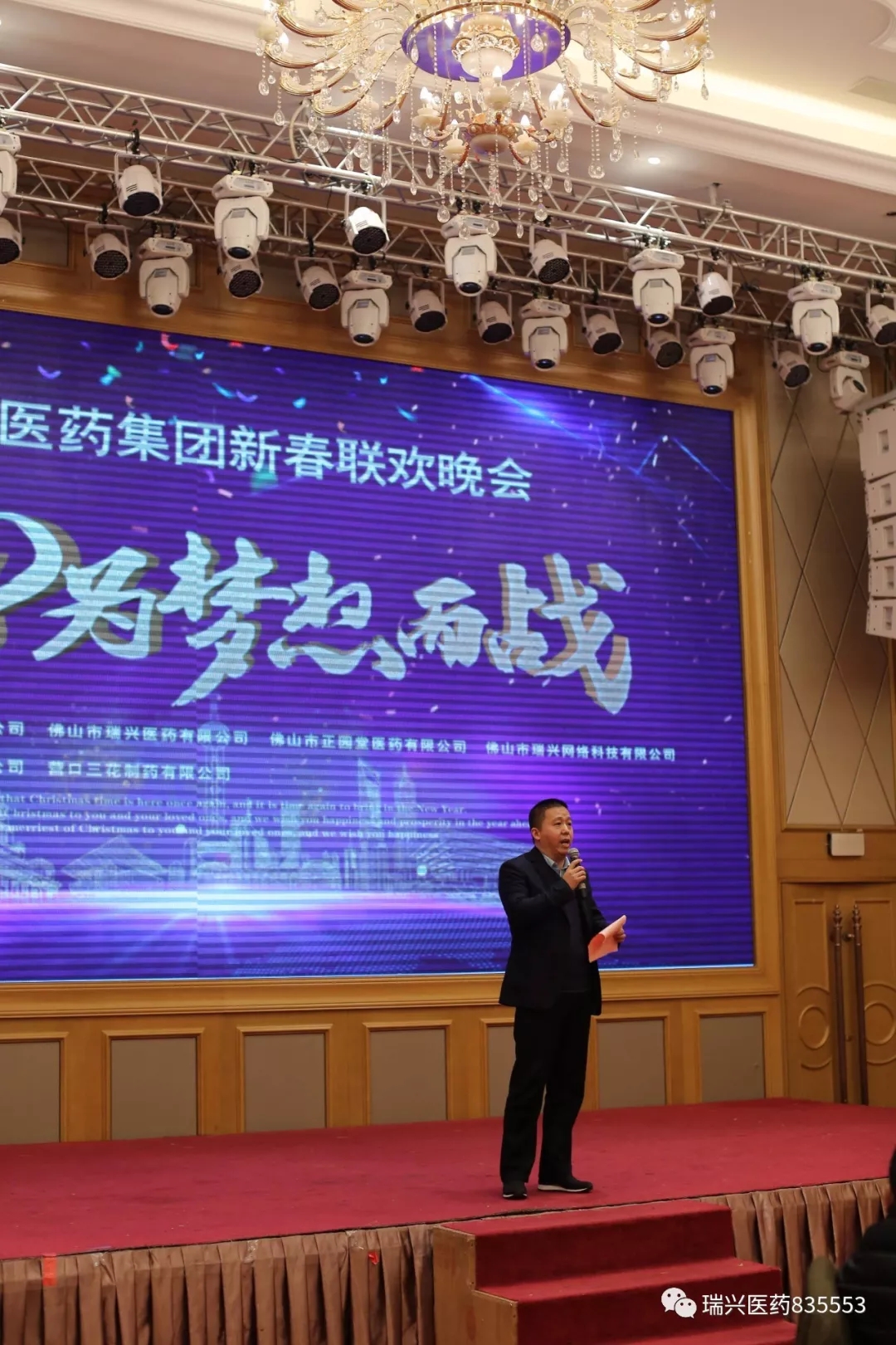 隨著晚會倒計時的出現及開場節目的精彩演出,主題為“2018為夢想而戰”的瑞興醫藥集團新春聯歡晚會慢慢地拉開了帷幕!