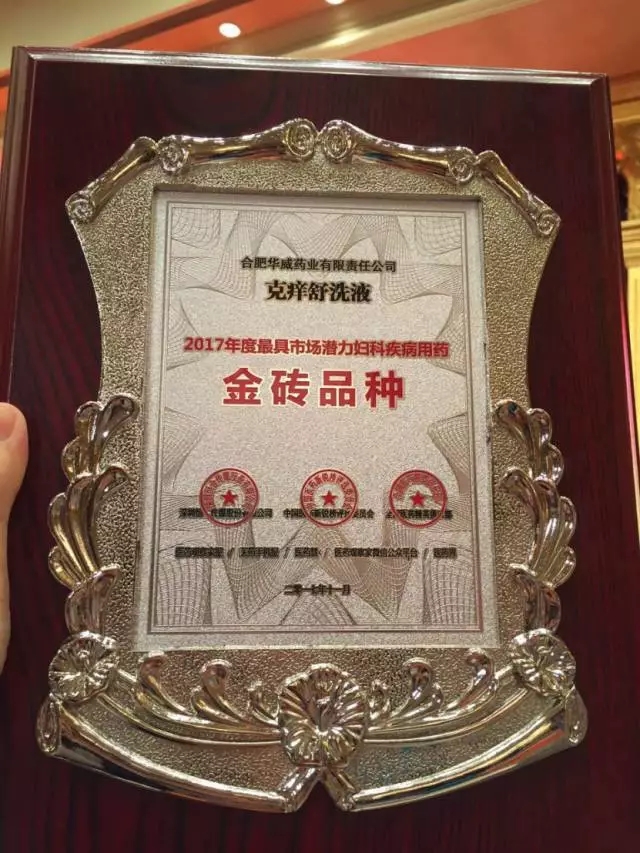 11月27日,由合肥華威藥業生產的婦科產品【克癢舒洗液】榮獲2017年度最具市場潛力婦科疾病用藥金磚品種獎!