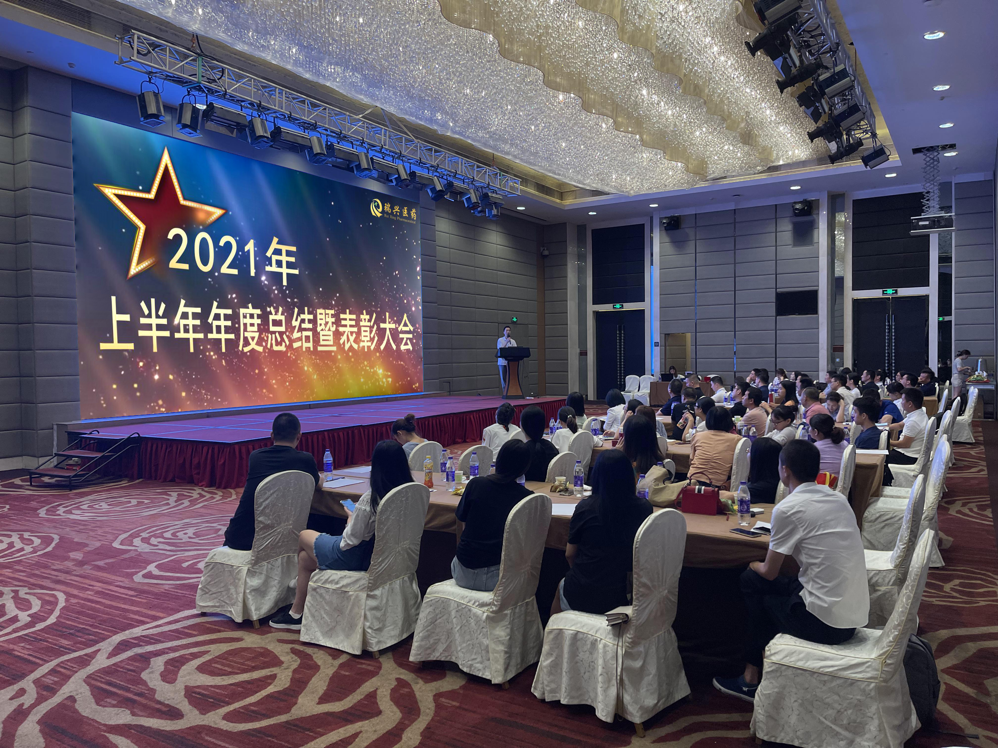 7月18日上午九時,瑞興醫藥2021年上半年度工作總結暨表彰大會在佛山鉑爾曼酒店順利召開。公司董事長黃凌云先生、總經理欒廣根先生、副總經理周益先生、營銷中心總經理陳廣明女士及全體員工出席了本次會議!